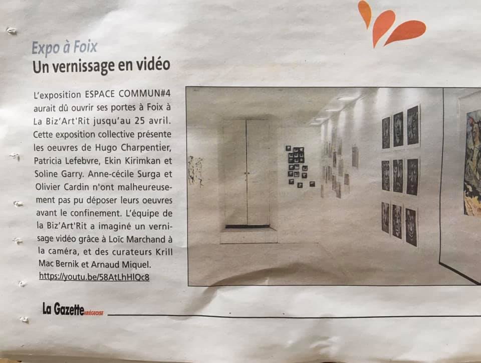Espace commun #4 est une exposition qui rassemble les diverses pratiques des membres actifs de l’association afin de sensibiliser le regardeur quant à la diversité de nos pratiques et permettre également aux habitants de découvrir les artistes contemporains de leur région ainsi que leur pratique. En raison de la pandémie de Covid 19, nous avons décidé de réaliser cette exposition en ligne, découvrez là en vidéo sans plus attendre !