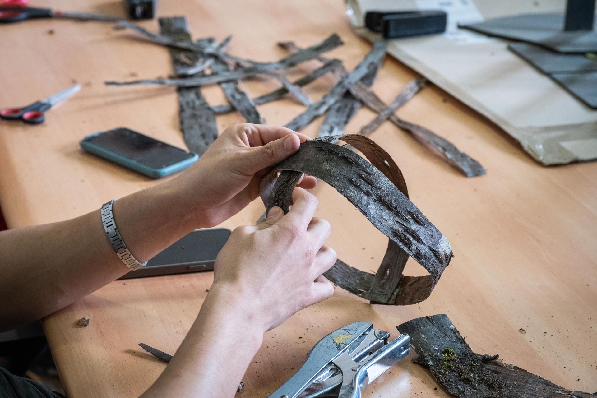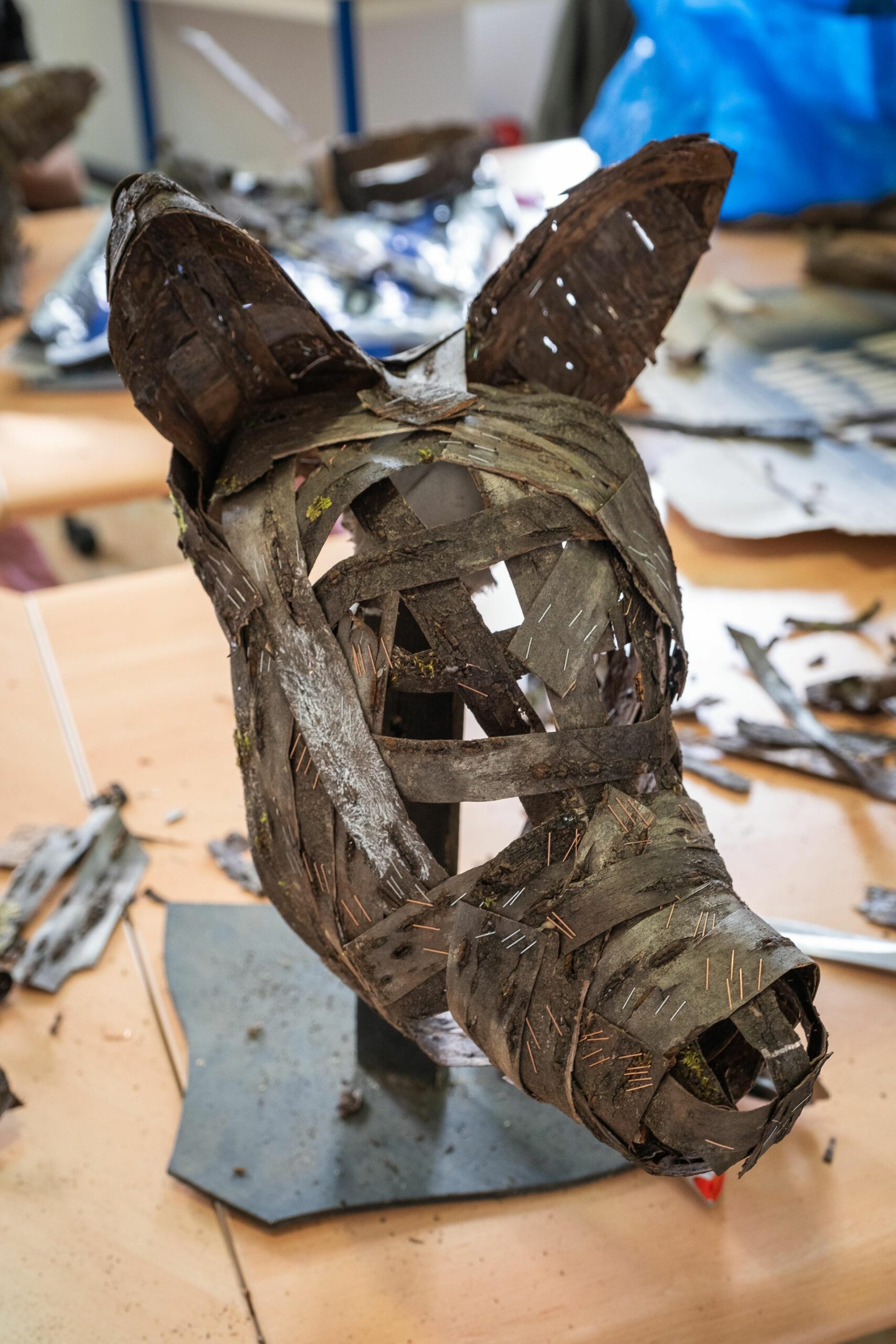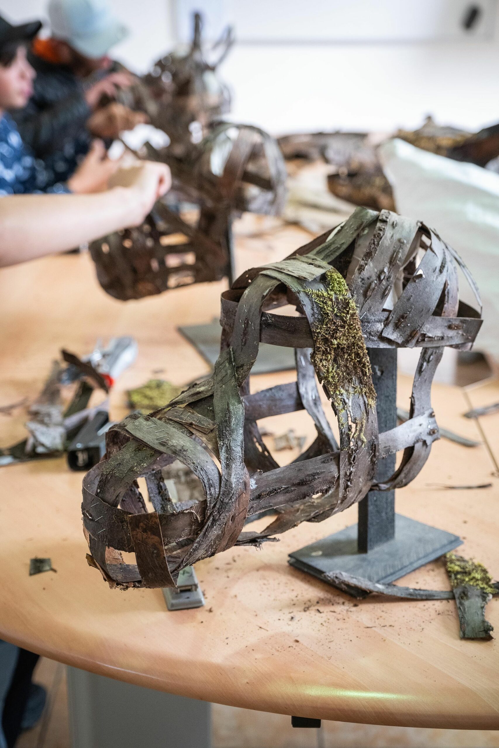 Lors de ces ateliers, il s’agit de créer des masques en écorce, puis de les mettre en situation et de les prendre en photo.