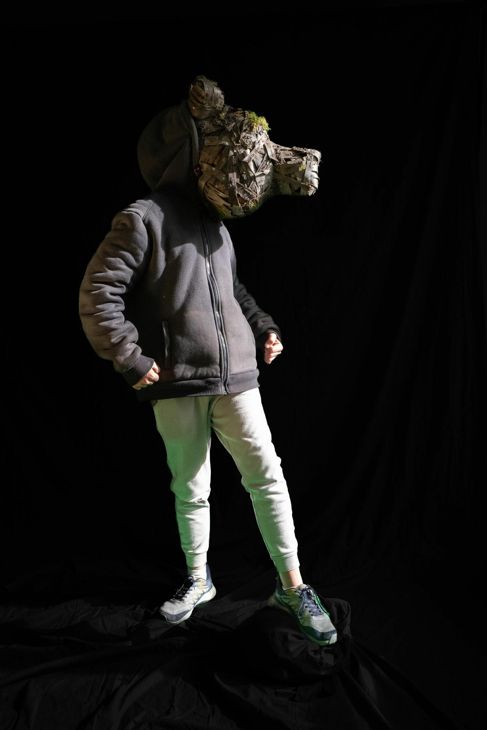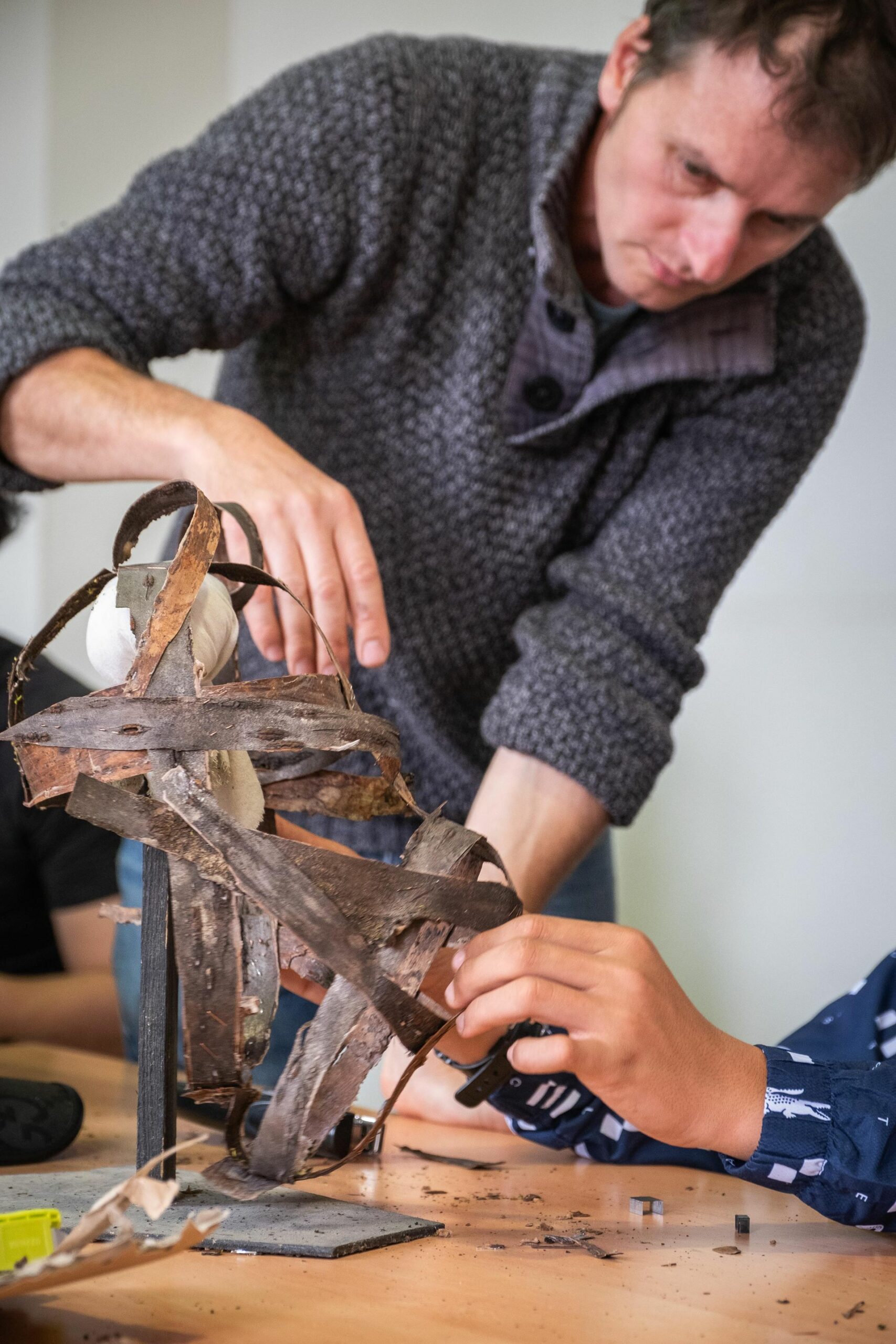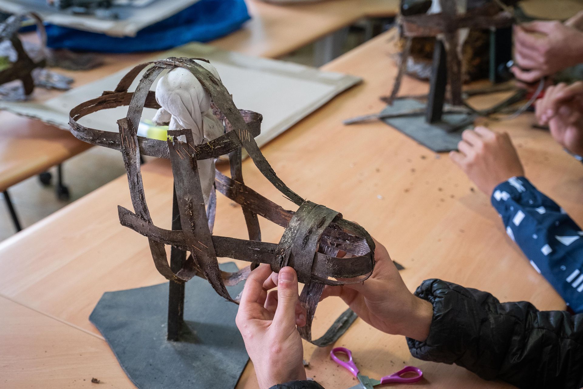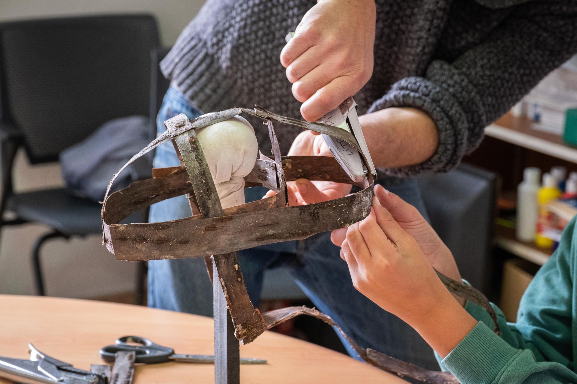 Lors de ces ateliers, il s’agit de créer des masques en écorce, puis de les mettre en situation et de les prendre en photo.